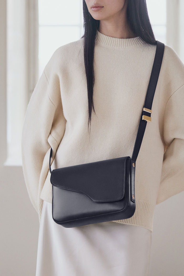 Five years deep, the iconic swoosh shape of our bag line is stronger than ever. For Fall 2022 though, we decided to elevate the concept with the Bolgheri box bag. The bag is one of our most luxe bags to date in soft but durable metal-free nappa. Bolgheri is not all about looks though it’s impeccably thought through and versatile with its adjustable strap that snaps into three different lengths. The box bag is exclusively available with us, online and in our Atelier in Stockholm.