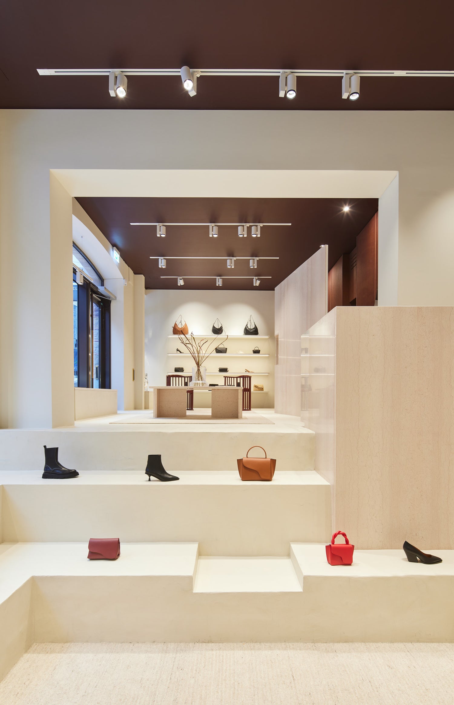 The new space at Jakobsbergsgatan 6 unfolds across two levels, creating a dynamic and immersive shopping experience. The staircase that connects the two levels serves as a striking homage to a pulpit, seamlessly blending the cathedral theme with modern design. The intricate detailing and craftsmanship of the staircase mirror the artistry found in the pulpit of historic cathedrals, providing a visual narrative that transcends time.