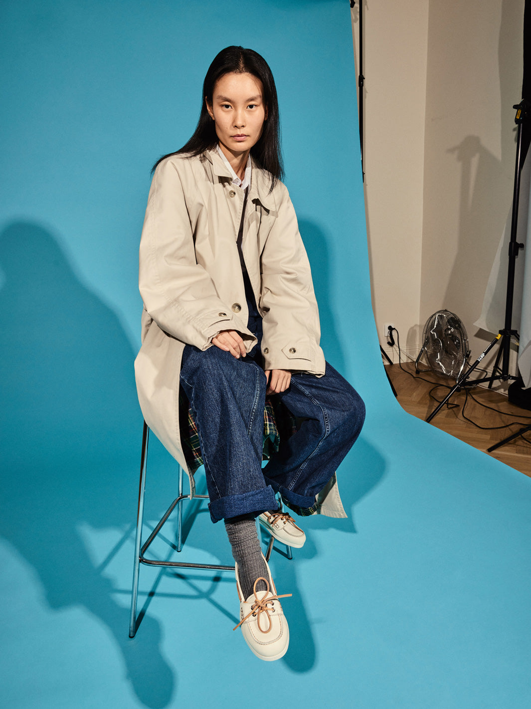 Nesso Bianco/Contrast Stitch Grained Leather Boat shoes