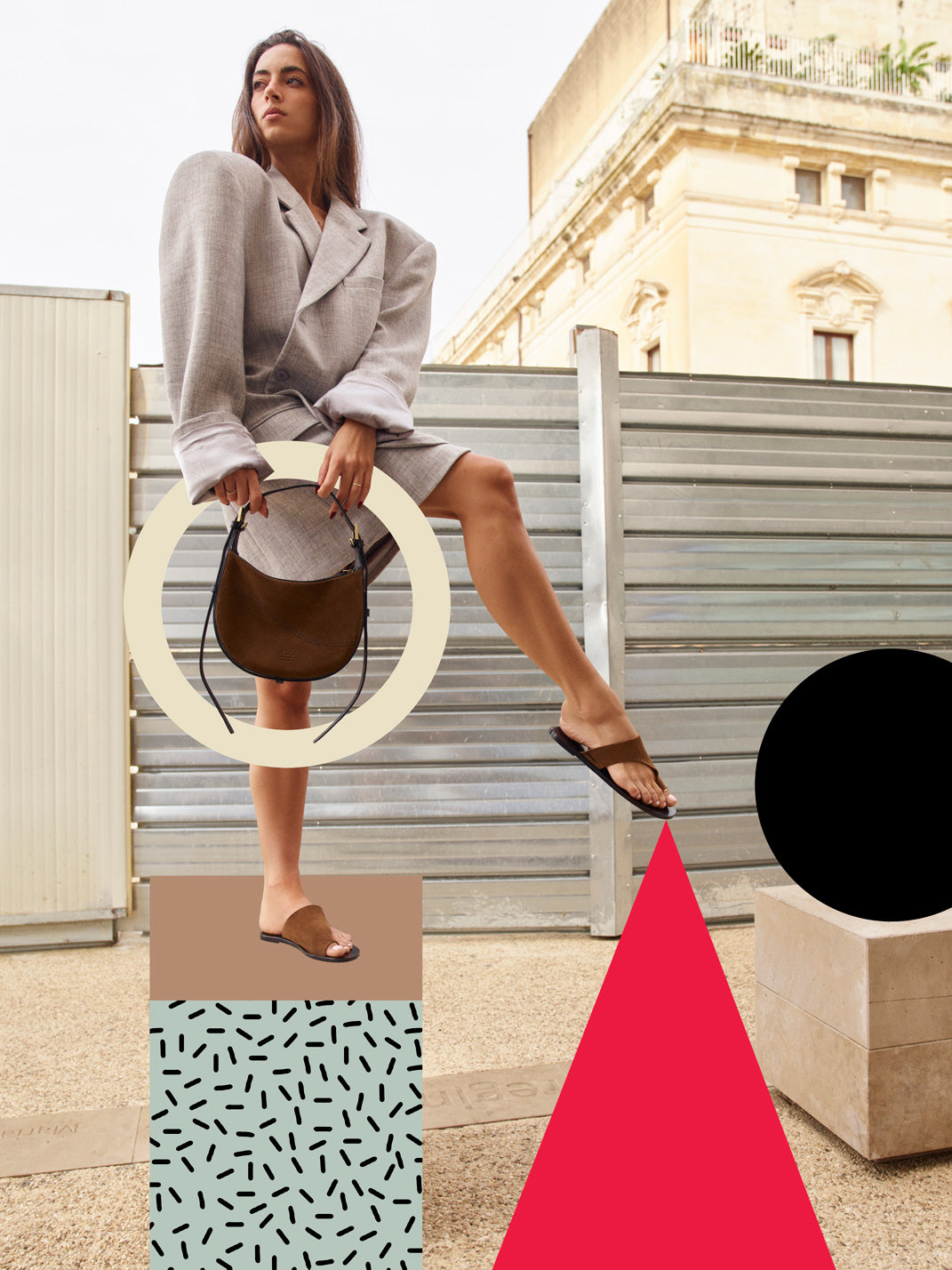 Spring 2025 plays with contrasts—soft suede meets sleek leather, rough canvas pairs with polished accents, and crisp white stitching adds a fresh edge. Tassel loafers, ostrich-print totes, and vibrant ballerinas bring bold versatility to the season.