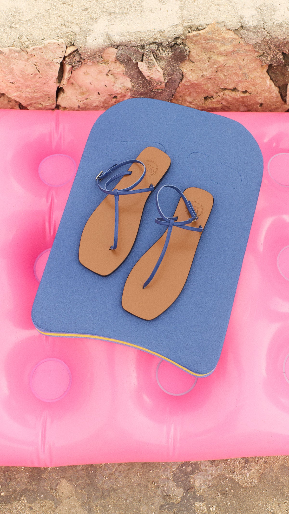 Allai Cannella/Contrast Stitch Leather Flat sandals