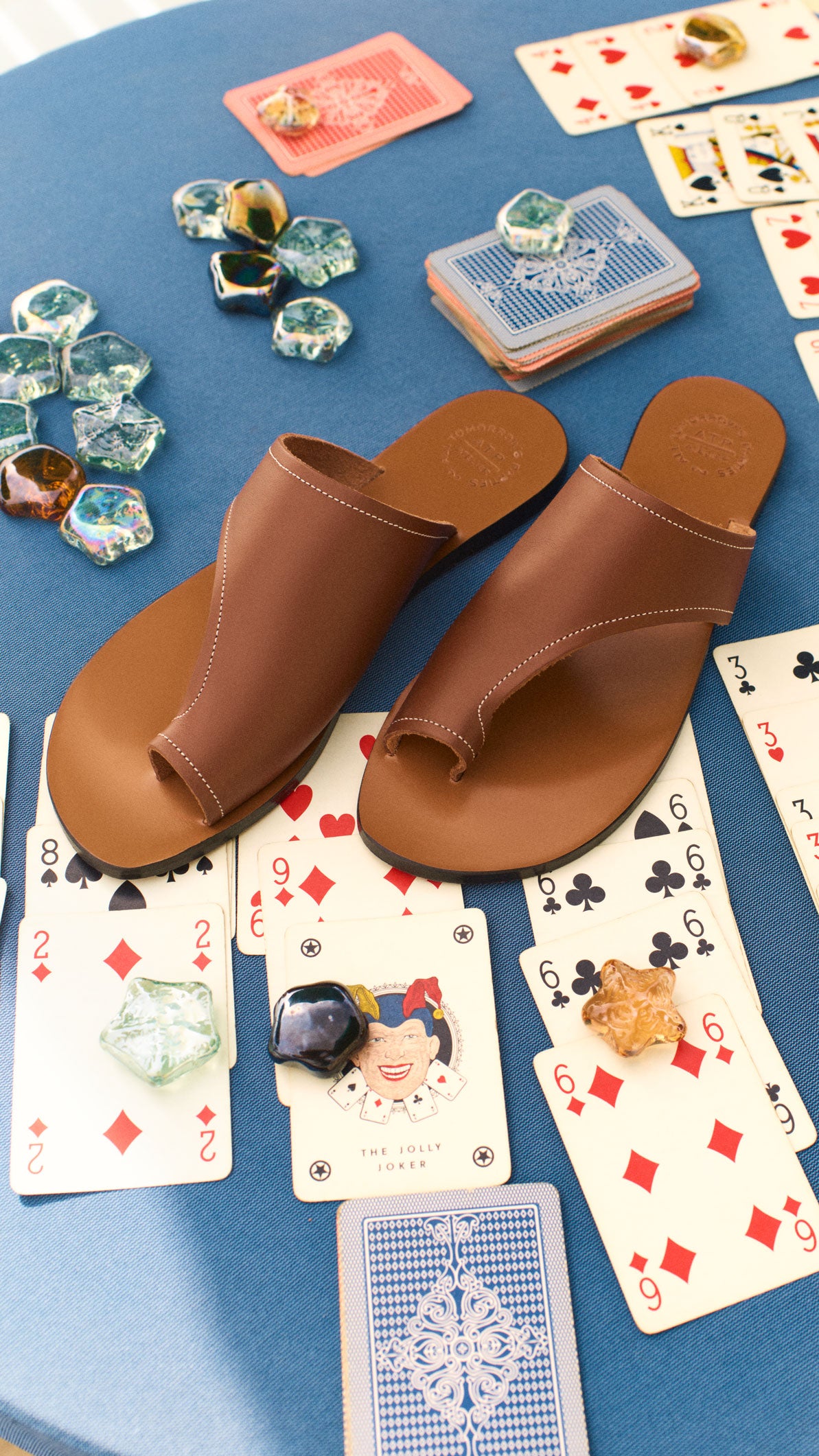 Rosa Cannella/Contrast Stitch Leather Cutout sandals